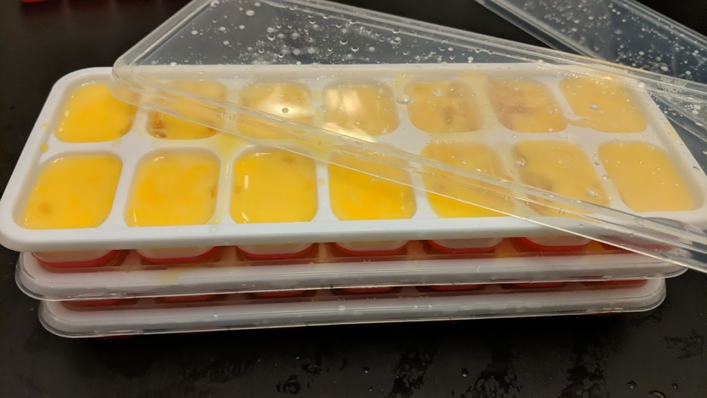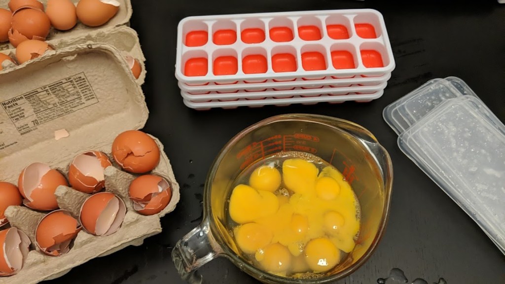 Most powdered scrambled egg mixes and powdered eggs on the market today contain artificial flavors or unhealthy chemical preservatives that make them less than ideal. So, I did a bit of research and discovered that I could take the eggs outside of the shell and freeze them in covered ice cube trays, pop them out and toss them into a ziplock freezer bag for later.